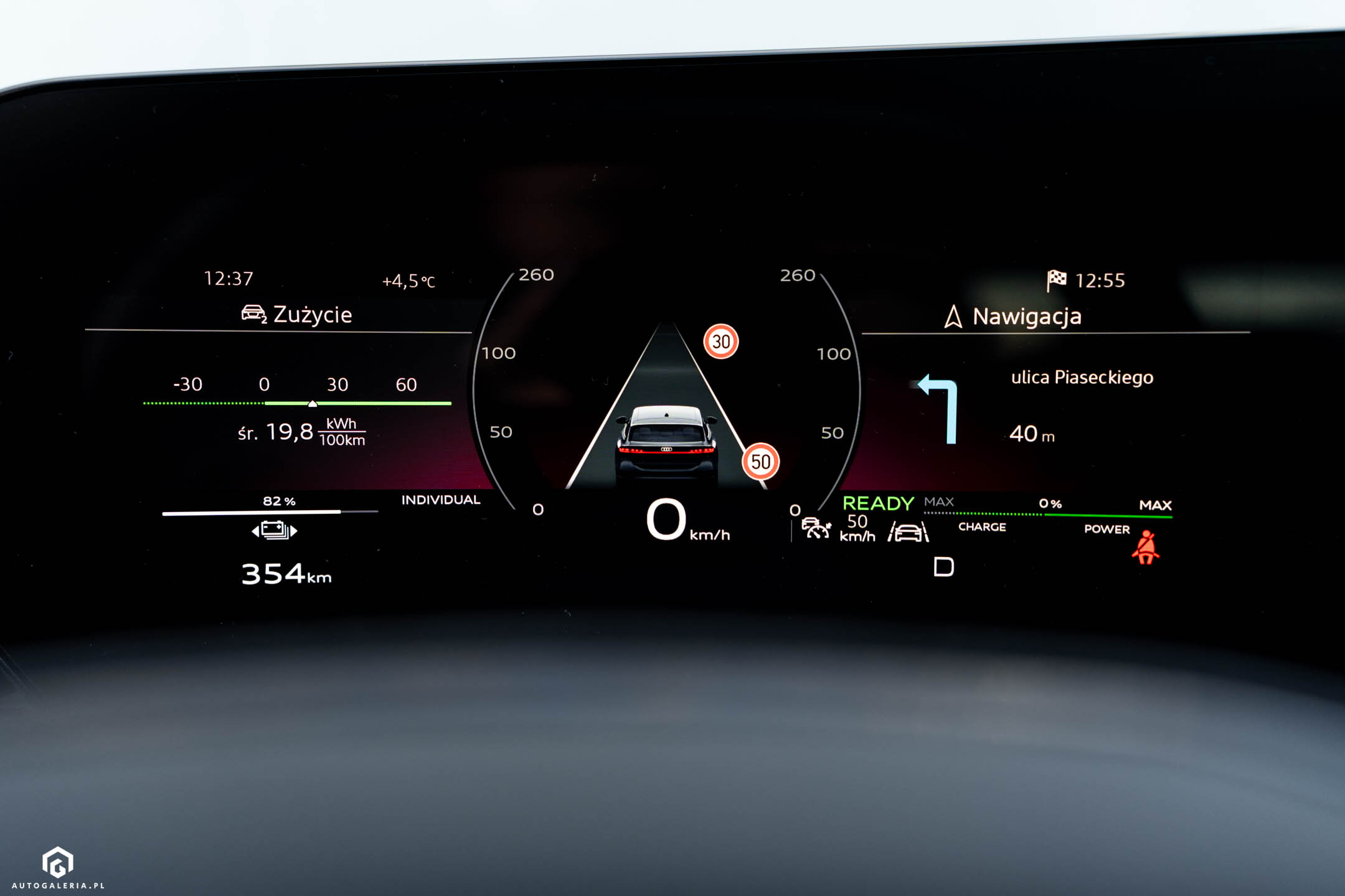 Trzy słowa o nowych cyfrowych lusterkach. Po pierwsze: wciąż mają zbyt małe i dziwnie ulokowane wyświetlacze. Jest lepiej, niż w modelu Q8 E-Tron, ale pole do poprawy jest ogromne. Po drugie: kąt obrazu na prawym ekranie należy do przedziwnych - trudno jest się do tego przyzwyczaić. Trzecia kwestia to adaptacja do "płaskiego" obrazu na ekranie - niektórym dużo trudniej będzie ocenić odległość.