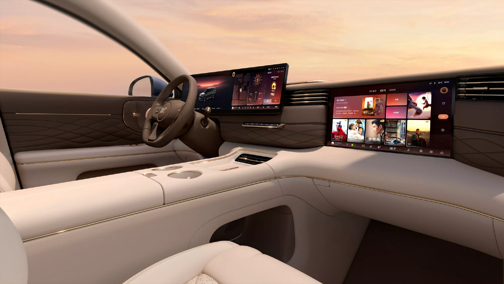 Kabina otrzyma panoramiczny ekran o przekątnej 27,1 cala, który integruje cyfrowe wskaźniki z systemem multimedialnym. Przed pasażerem z przodu znajdzie się osobny ekran 15,6 cala. System audio dostarczy Bang & Olufsen (pod marką B&O). Wszystkie fotele zaoferują funkcję masażu, a ogrzewanie podłogowe podniesie komfort podróży. Pasażerowie tylnych siedzeń zyskają składany z podsufitki ekran o przekątnej 27 cali i rozdzielczości 5K.