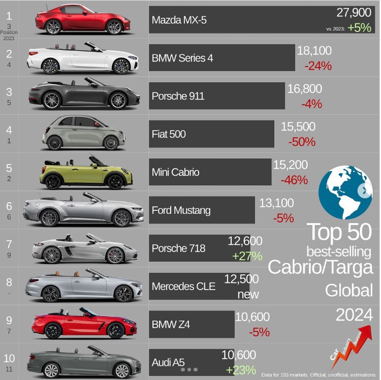 Patrząc na wyniki sprzedaży w 2024 roku, kabriolety są w odwrocie. Jako tako trzyma się Mazda MX-5. Ma to jednak swoje uzasadnienie.