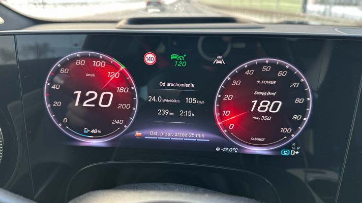 System MB.OS, czyli nowe multimedia, działają wzorowo i mają bardzo dobrą obsługę. Właściwości jezdne są świetne, dynamika (272 KM) nie zawodzi, a pozycja za kierownicą jest wygodna. Bardzo dobrze działa też system rekuperacji - może być manualny (trzy stopnie) i automatyczny (działa przy wykorzystaniu radaru). Ja jeździłem głównie z tym drugim.