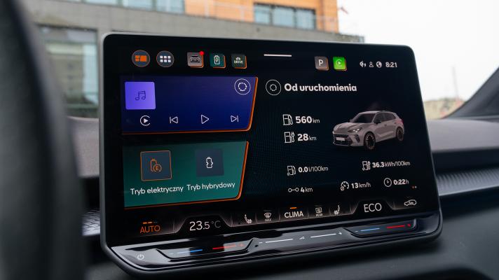 Przede wszystkim z ceną. Oraz z wyposażeniem. Jedno ma wpływ na drugie, ale skutki są wielopoziomowe. Prasowy egzemplarz hybrydowej Cupry ma konfigurację, która skończyła się na ponad 280 000 zł. Tak, ten hiszpański krewniak Audi Q3 kosztuje blisko tyle co RS3 z Ingolstadt. Mając pod maską 1.5 z dodatkowym obciążeniem i ponad 270 KM. Oczywiście, jest wyposażony "pod korek", ze skórzanymi fotelami, szklanym dachem i wpadającym w fiolet lakierem Dark Void, który nie jest Dark, za to kosztuje dwa tysiące więcej niż inne szare lakiery w gamie Terramara. Jest jeden granat do wyboru i matowy brąz.