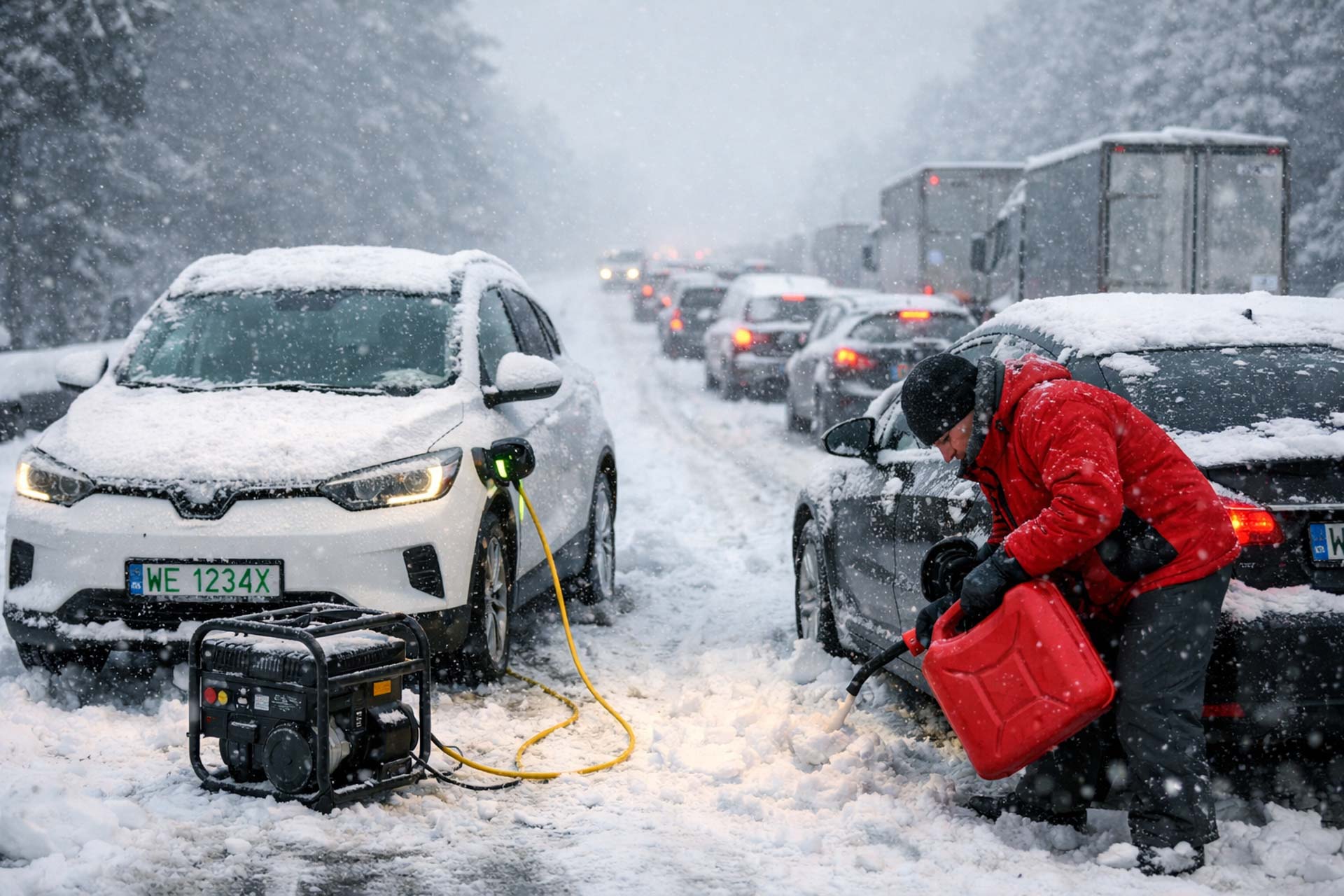 Potężny korek na trasie S7, który był owocem intensywnej śnieżycy, doprowadził do najmniej oczekiwanego starcia wojowników elektromobilności i obrońców samochodów spalinowych. Poszło o to, czy w korku lepiej stać w aucie na prąd, czy w samochodzie spalinowym - i które z nich dłużej zapewni ciepło pasażerom. Posypały się przezabawne argumenty, a wystarczy popatrzeć na liczby.